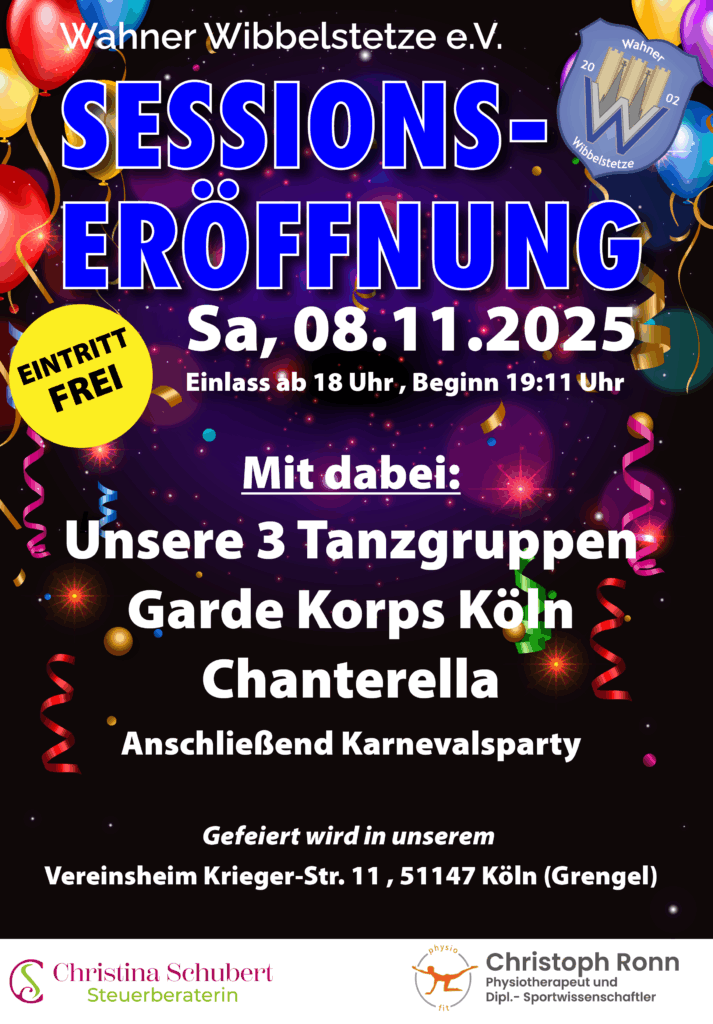 Anfang September feiern wir ein ganzes Wochenende lang unser inzwischen legendäres „WibbelWahn“. Ende Oktober folgt unsere Halloweenparty für Groß und Klein, bevor wir Anfang November mit unserer Sessionseröffnung schwungvoll in die Karnevalssession starten.